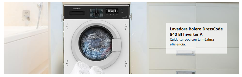 Cecotec Lavadora 8Kg Integrable, 840 BI Inverter A. 1400RPM Máximas Regulables, 16 Programas, Bajo Consumo,