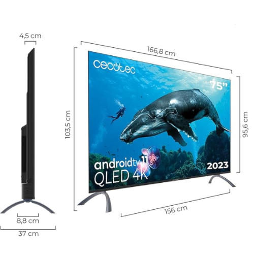 Cecotec Televisor QLED 75″ Smart TV V2. Resolución 4K UHD,Android TV 11, Google Assitant y Chromecast.
